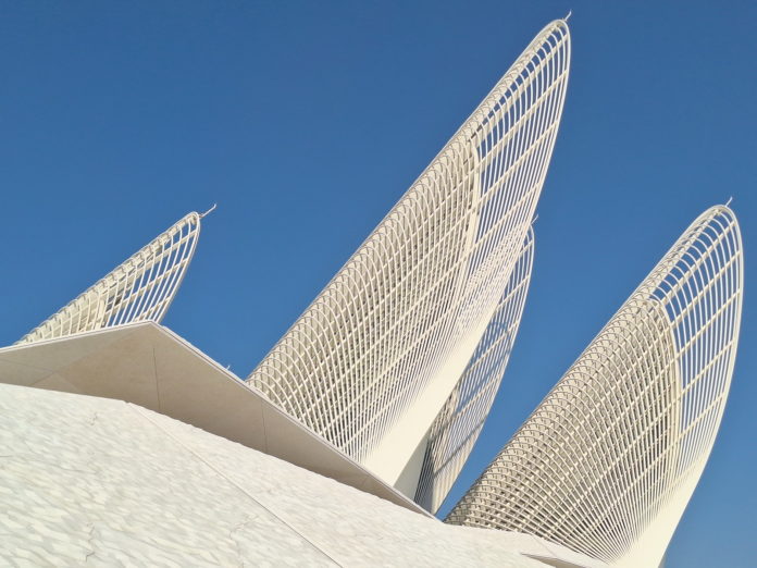Az épületet a Foster + Partners brit építésziroda tervezte. Formáját a sólyom szárnyai inspirálták, és olyan innovatív építészeti megoldásokat alkalmaz, amelyek segítik a természetes hűtést a sivatagi környezetben.